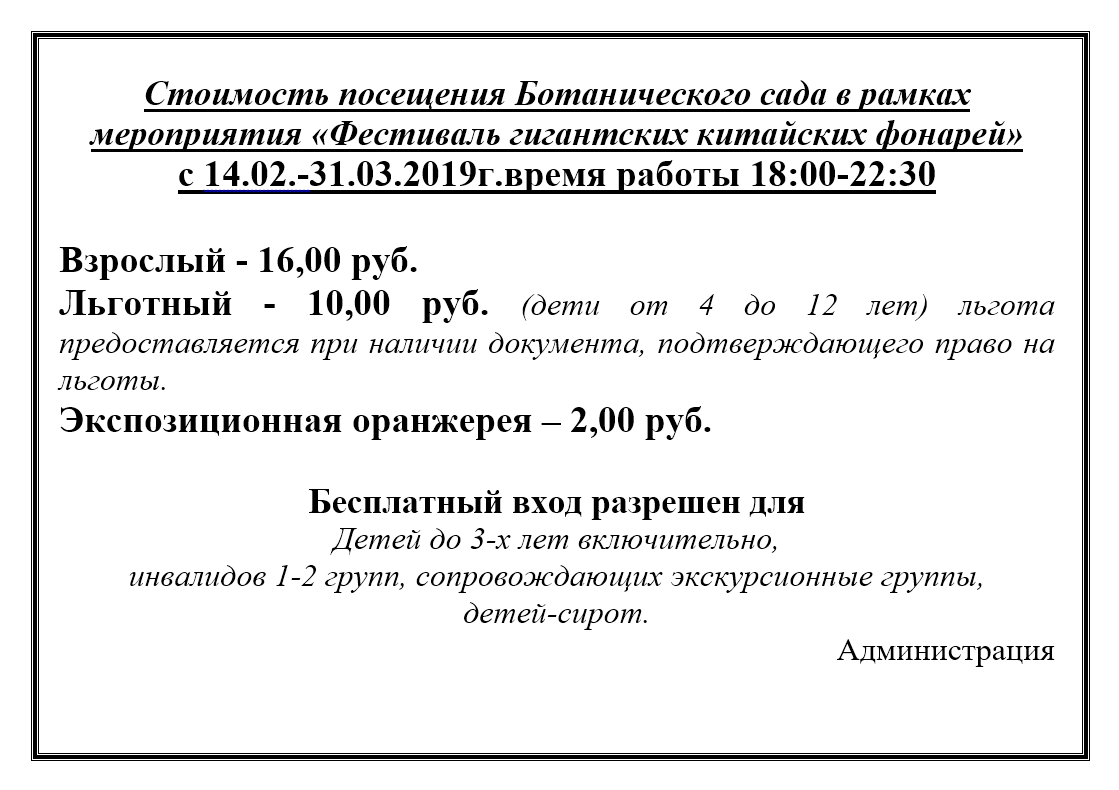 14.02.2019 - 31.03.2019 Шоу «Фестиваль гигантских китайских фонарей» было создано китайской компанией Haitian Culture на основе древних традиций и современных технологий. Вдохновением для создателей стал «Праздник фонарей» – одна из древних традиций, которой уже больше 2 000 лет. Его отмечают в завершающий день двухнедельного китайского Нового года. По всему Китаю жители зажигают фонарики у своих жилищ, во многих регионах страны проходят яркие представления, показывающие искусство фонарей во всем его многообразии. Частичка настоящей китайской традиции приедет и в Минск. В Центральном Ботаническом саду будет вставлено более 25 масштабных световых композиций, включающих в себя больше чем 500 объектов. Каждая фигура – это результат труда десятков мастеров и мини-шедевр. Прочный стальной каркас искусно укрыт разноцветной тканью и мастерски подсвечен изнутри, благодаря чему, несмотря на свой немаленький размер, экспонаты кажутся абсолютно невесомыми. На живописной территории Центрального ботанического сада вас ждет восхитительное путешествие в мир сказки, где вас встретят удивительные животные, птицы, растения и многие другие образы на стыке реальности и фантазий. Фестиваль гигантских китайских фонарей ждет вас ежедневно с 14 февраля по 31 марта с 18:00 до 22:30. Экспозиционная оранжерея работает с 18:00 до 22:00. Продажа билетов прекращается в 21:30. Билеты: взрослый – 16 BYN, детский – 10 BYN. Дети до 4-х лет бесплатно. Инфолиния (44) 594 79 47 0+